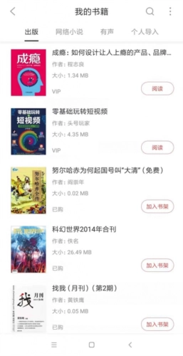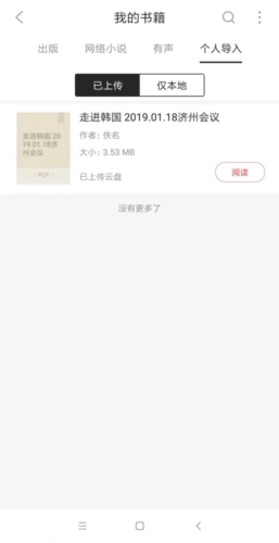 6.到这里就可以看到成功导入的电子书籍,点击“阅读”即可。