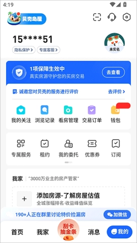 1、打开贝壳找房,点击右下角的“我的”选项。