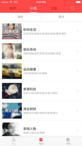 -利用书籍分类功能,快速找到感兴趣的书籍。