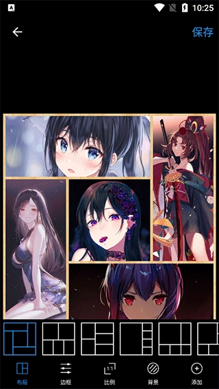 3、在此处,你能够自由调整布局、边框、比例、背景等。点击单张图片进行选择后,还能对其单独编辑或变换位置。