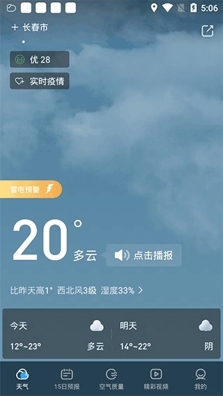 2、实时天气动画,让用户更直观地了解当天的天气状况。