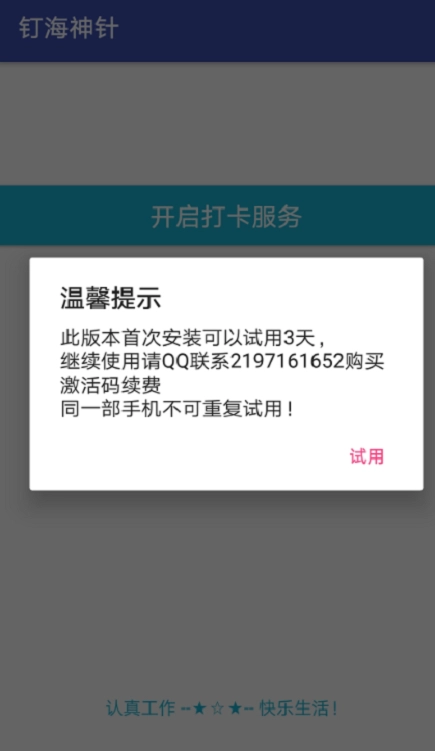 3、软件具备野外打卡功能,您只需开启钉海神针软件里的野外打卡开关,即可进行野外打卡操作。
