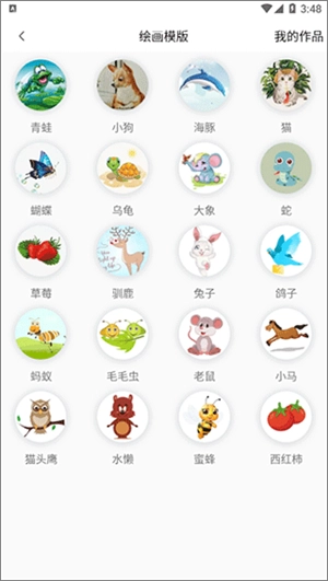 2、以“临摹”功能为例,这里提供了众多绘画模板,像青蛙、小狗、海豚之类,我们能够从中挑选一个绘画模板。