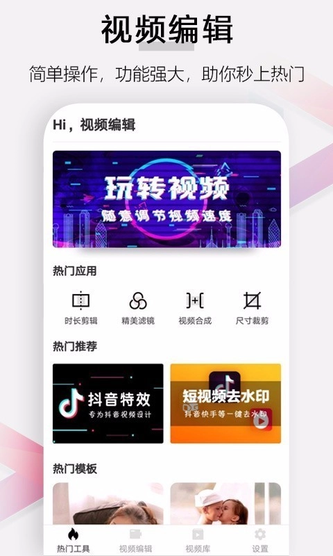 1. 这款软件内拥有各式各样的视频剪辑模板,支持自由套用,一键即可生成,助你轻松剪出心仪的视频。此外,它还具备丰富的背景音乐素材,能为你的视频增添酷炫音效。