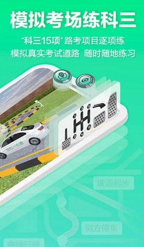 2.支持各地区真实考场在线模拟; 科目三的 15 个考试场景