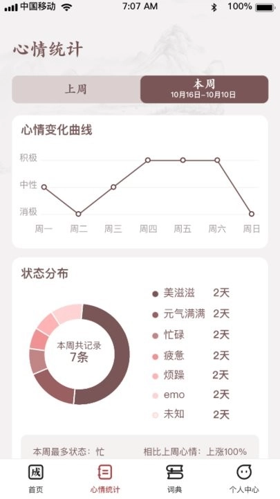 3、首页可以记录每天的心情。你是忙还是快乐?还可以发弹幕互动,提供心情建议,记录生活。最有意义的是回头看~