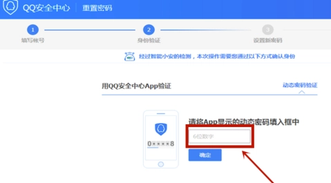 3、随后会弹出QQ安全中心用于重置密码的网页。要是你此前设置了动态密码保护,那就需在手机上查看动态密码,接着输入,再点击确定。