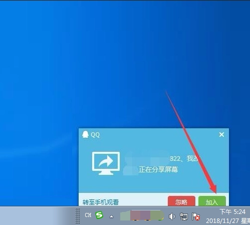 3、这时对方会弹出邀请通知,接收之后就可以进入共享桌面。