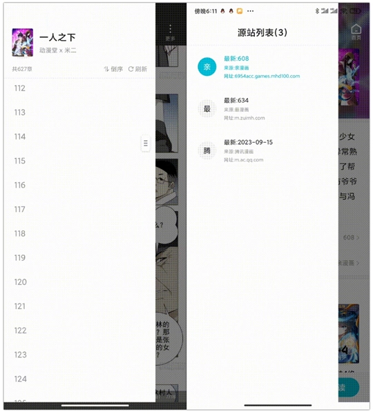 2、【超多漫画源】了多条漫画源,根据需要在不同的漫画源之间切换,获取更全面的漫画资源;