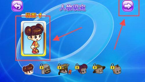 3、在人物设定页面选择一个游戏角色后,点击右上角的箭头就可以开始游戏啦。