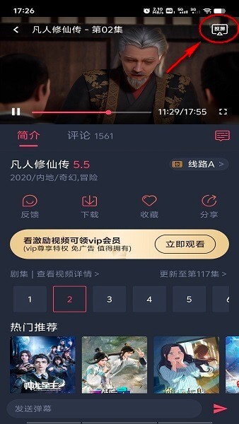 2、进入播放详情页,点击播放界面任意位置呼出菜单,如图所示,点击“投屏”按钮。