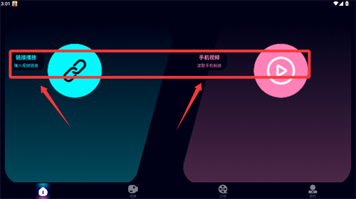 2、在主界面,可选择链接播放或手机视频等不同播放模式。