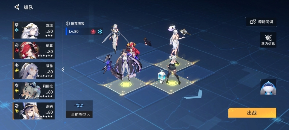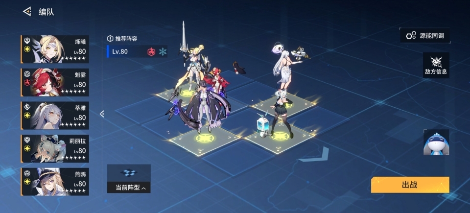 因为电队有自己的SSR辅助艾可,所以电队是非常推荐当两个队伍之一来培养的,上限很高,这一套阵容就是电队的最高配置,其中你如果出了卡兰丽莎,没有泠,强烈推荐氪一个6元,没有泠的卡兰丽莎实在是一言难尽。